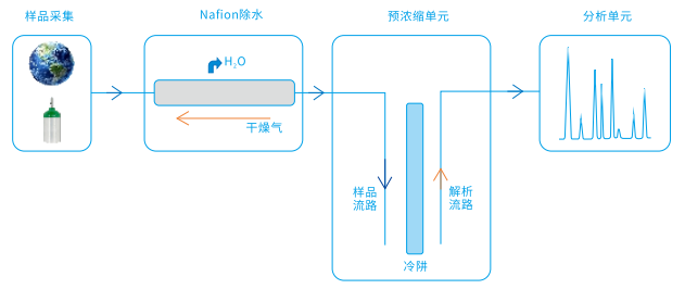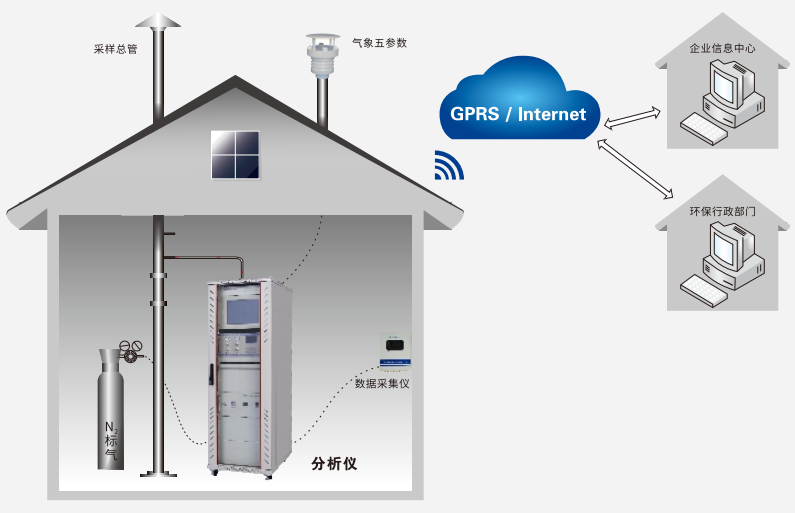 樣氣采集單元:主要由標(biāo)準(zhǔn)化的大氣采樣總管、伴熱惰性化管路、流量控制、除塵等組成,實(shí)現(xiàn)樣氣的無(wú)損傳輸。