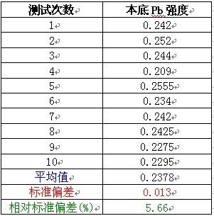 本底多次測量的平均值及相對標(biāo)準(zhǔn)偏差: