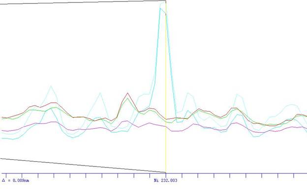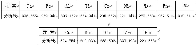 根據(jù)ICP軟件譜線庫提供所有元素不同譜線,首先選擇被測(cè)元素靈敏度高的譜線,其次考慮不受樣品基體及被測(cè)元素相互之間干擾小的譜線的原則,選擇分析線如下。