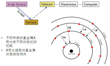 X射線熒光光譜技術(shù)(XRF)的原理見圖3所示,可以直接檢測固體或液體樣品中ppm量級的元素成分。采用富集后再檢測的辦法,使得XRF技術(shù)對空氣顆粒物中的重金屬成分的檢測限優(yōu)于0.001ug/m3。而常規(guī)實驗室的檢測技術(shù),由于預(yù)處理消解過程中需要將微克量級的樣品溶解到幾十克的液體中,而使得濃度被稀釋百萬倍,從而多數(shù)儀器(譬如ICP-AES、或原子吸收光譜儀)無法檢出元素含量低于10ug/m3量級的空氣顆粒物樣品。