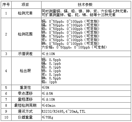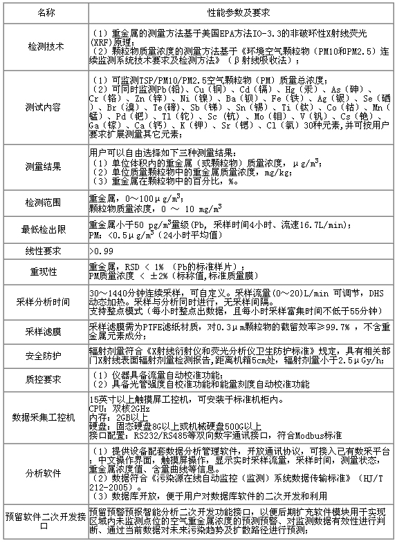 以下列出了大氣重金屬在線分析儀的一些重要技術(shù)參數(shù)(表1)。