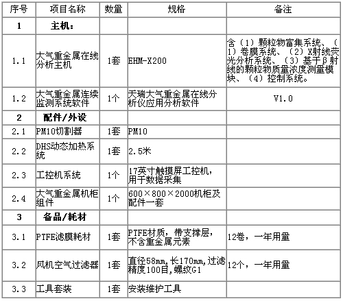 表1 天瑞儀器 EHM-X200大氣重金屬監(jiān)測儀技術(shù)參數(shù)