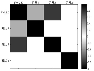 為了進(jìn)一步研究PM2.5與大氣重金屬之間的關(guān)聯(lián),并為PM2.5的控制提供方向,我們通過(guò)已經(jīng)劃分的三個(gè)組分與大氣PM2.5濃度進(jìn)行相關(guān)性分析。結(jié)果如圖5,發(fā)現(xiàn)該地區(qū)主要影響PM2.5的污染源為組分2(冶金工業(yè)廢氣)。
