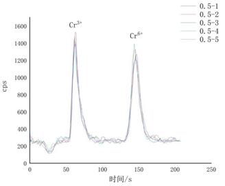 多次進(jìn)樣測定濃度為0.5 μg/L Cr3+和Cr6+混合標(biāo)準(zhǔn)溶液,進(jìn)行重復(fù)性試驗(yàn),見圖3: